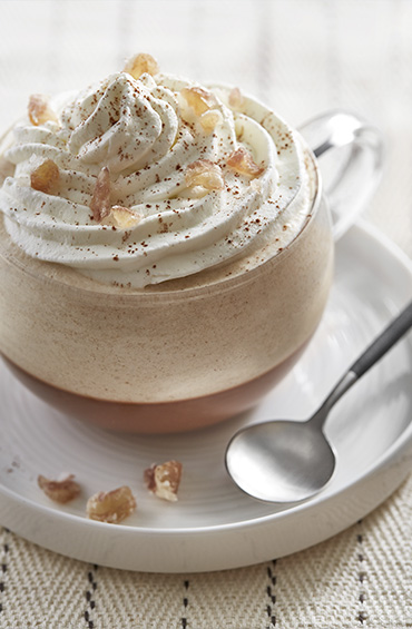 Monter 25 cl de crème au batteur pour obtenir une chantilly. Mélanger délicatement aux pots de Pomme Châtaigne.
